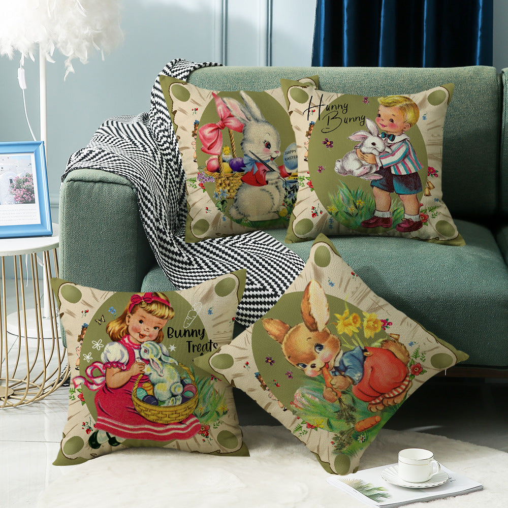 Bring a touch of nostalgic charm to your home with this 4 - piece pillow and pillowcase set. Each 45*45cm piece features adorable retro - style designs of bunnies and kids, perfect for adding a whimsical and cozy feel to your living space. Whether you're decorating a family room or creating a warm corner in your bedroom, these pillows blend comfort and vintage - inspired cuteness seamlessly.